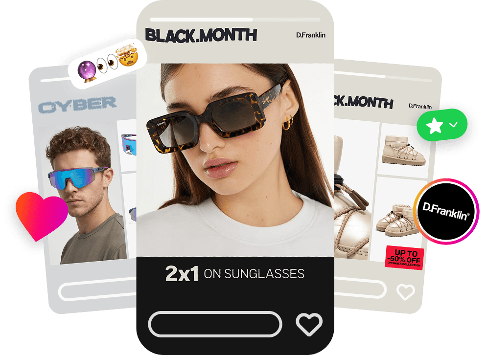 2: Creative concept validation. D.Franklin validated creative concepts in eyewear, its highest-margin line, before scaling them to footwear on November 24th and reusing them during Cyber Week. Keeping the same Renderoi catalog throughout the process preserved Meta's accumulated learning: performance improved week over week, from Black Month through the final day of Cyber Week.